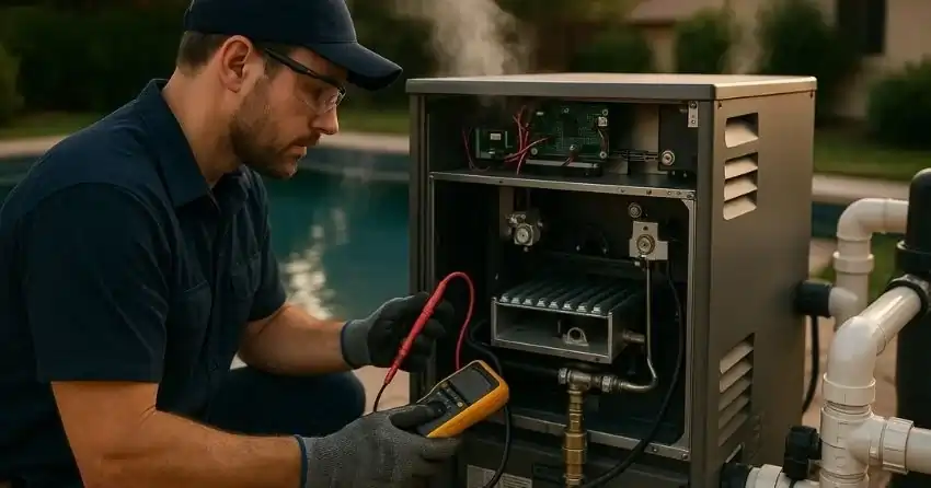 Pool heater repair problems in Riverside, Ajax? HVAC Ajax finds the cause, replaces igniters, sensors, gas valves, control boards, and heat exchangers, clears scale, and confirms operation so the water warms up without unnecessary upsells.